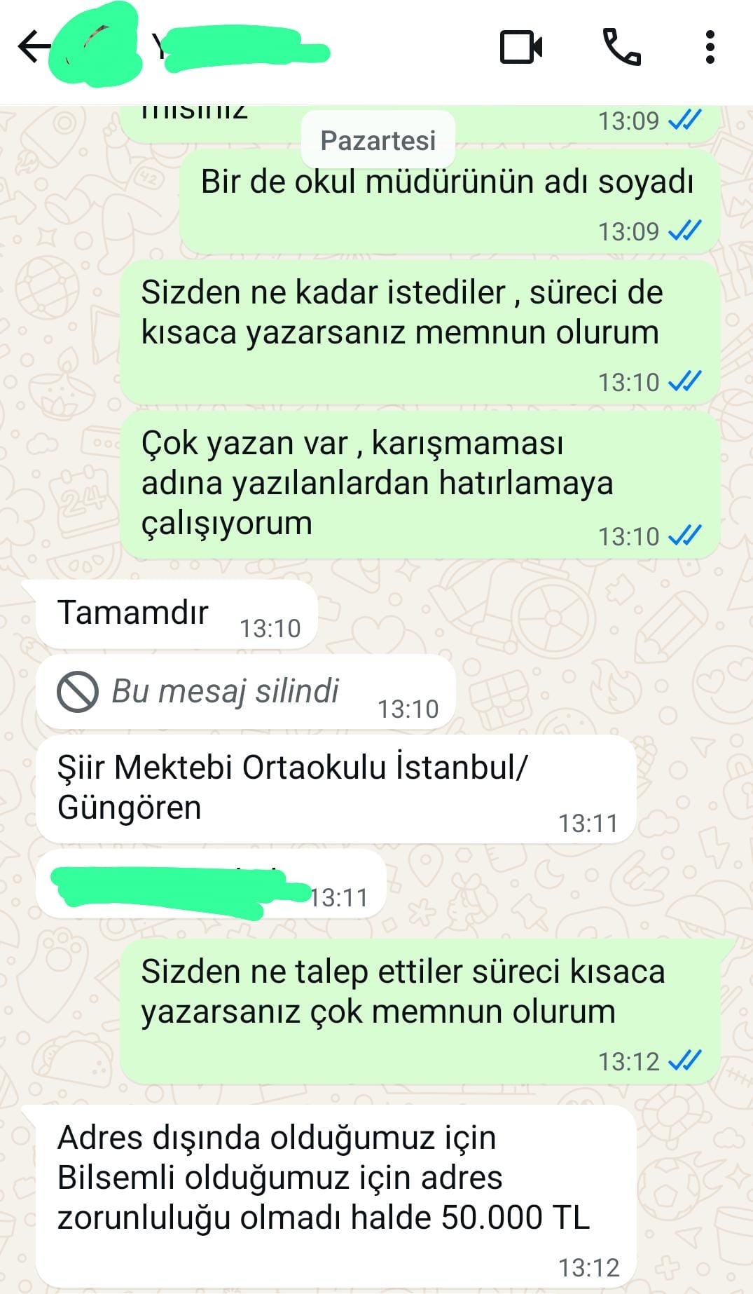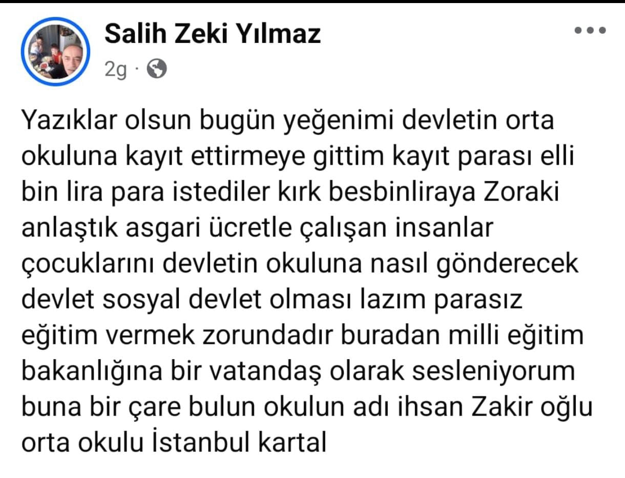 İstanbul Güngören de ise, yine okul yönetimi bir veliden 50 bin lira istedi.