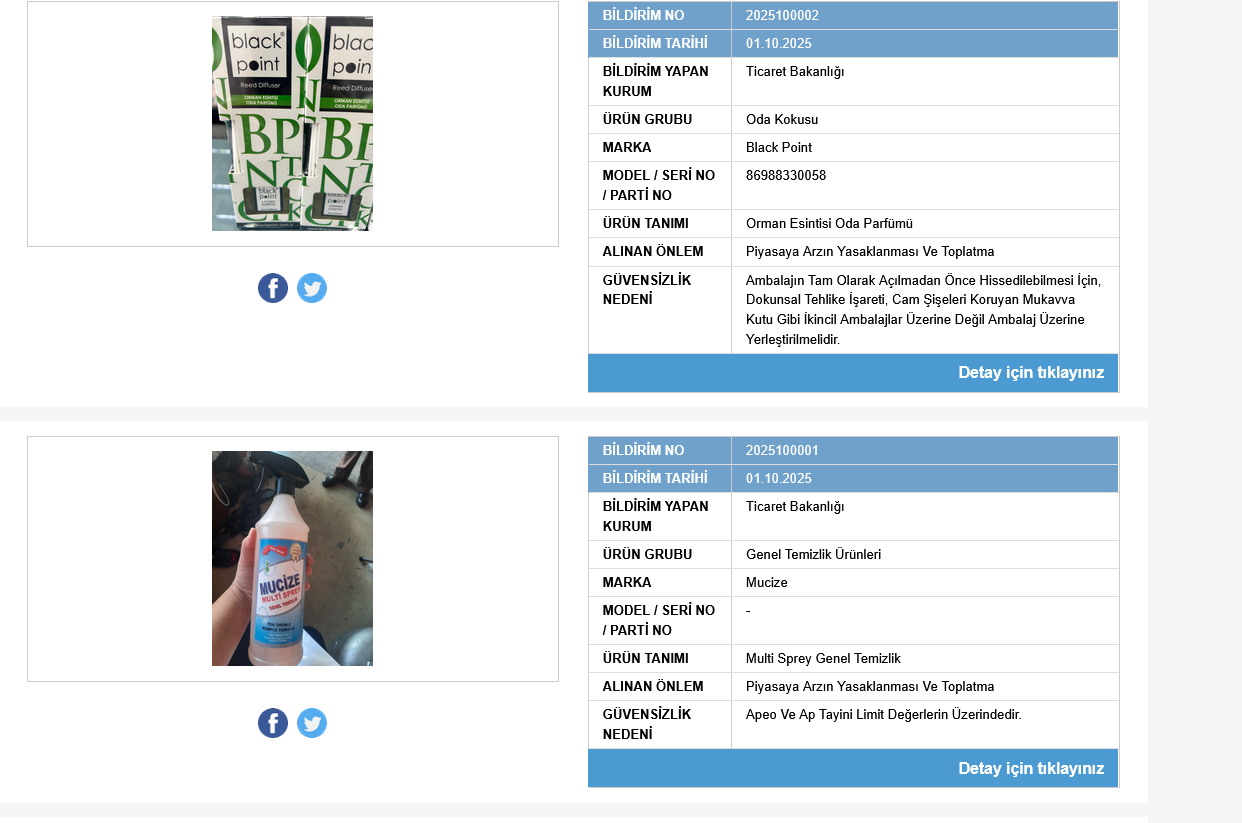 Bakanlık, güvensiz ürünlere karşı dikkatli olunması gerektiğini vurguluyor. Ürün güvenliği için tüketiciler, detaylı bilgilere “Güvensiz Ürün Bilgi Sistemi” üzerinden erişebilir. Bakanlık, ürün güvenliği için duyuruların takip edilmesi gerektiğine dikkat çekti.